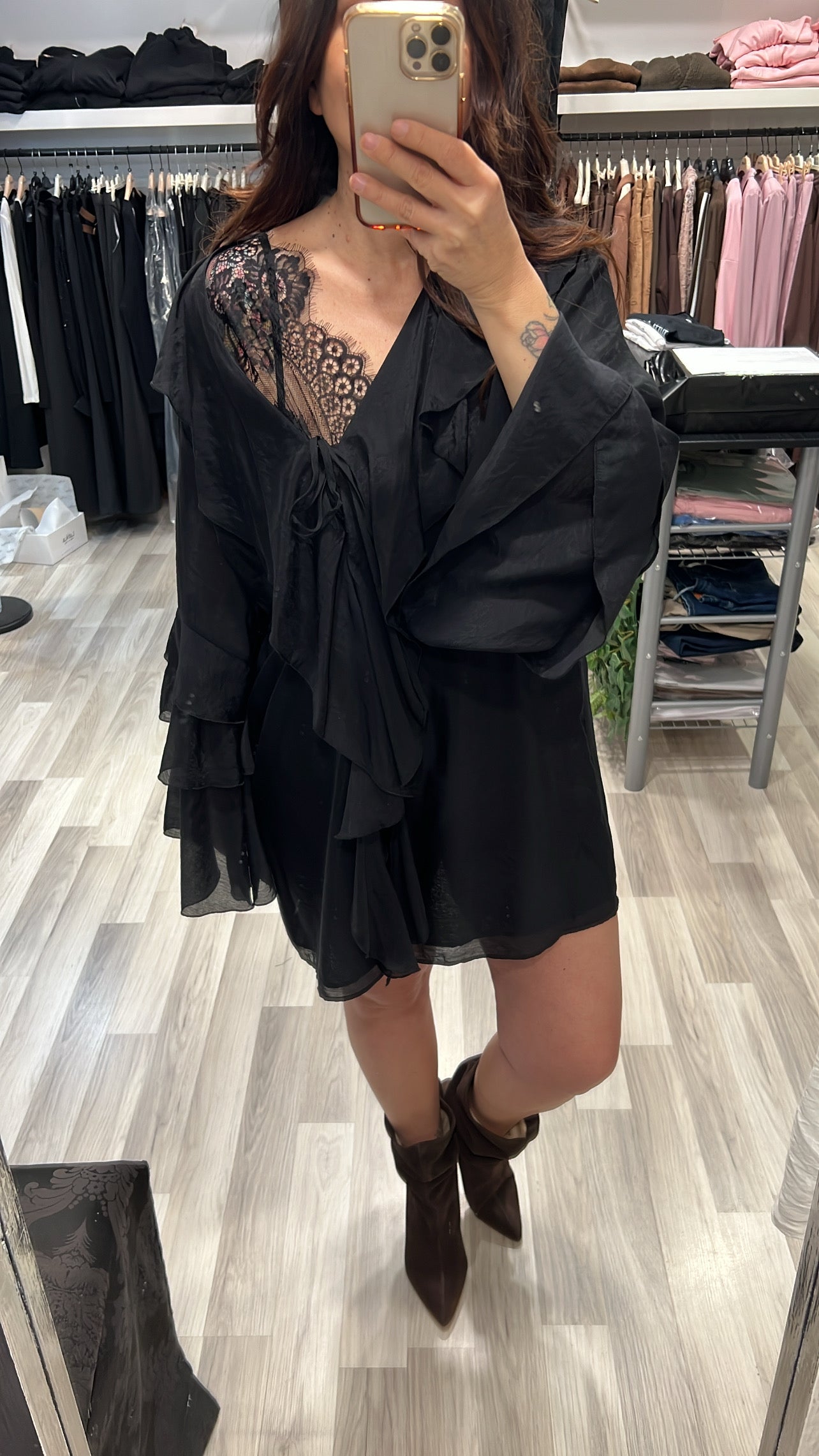 Abito oversize in mussola con rouches e coulisse in vita