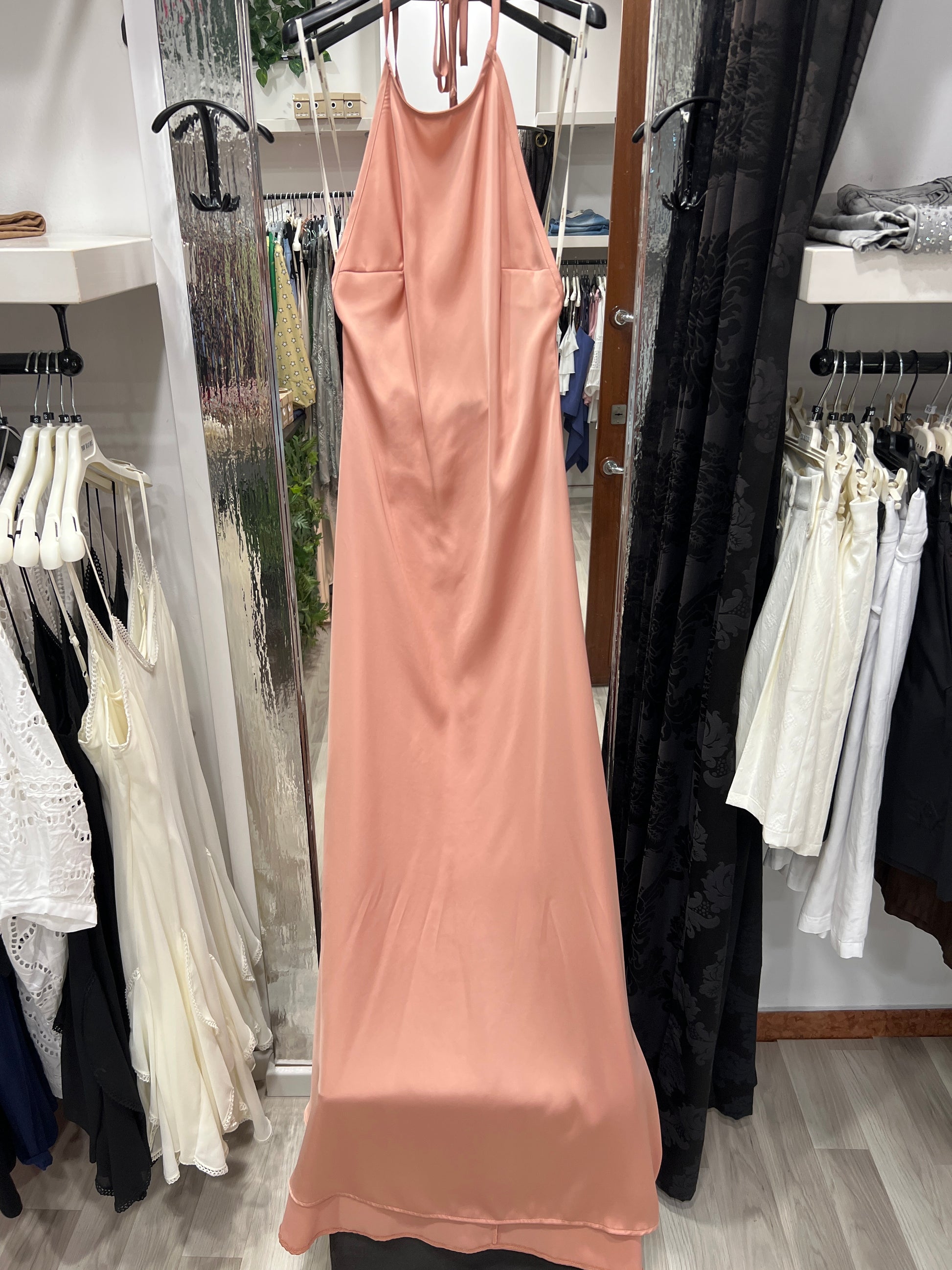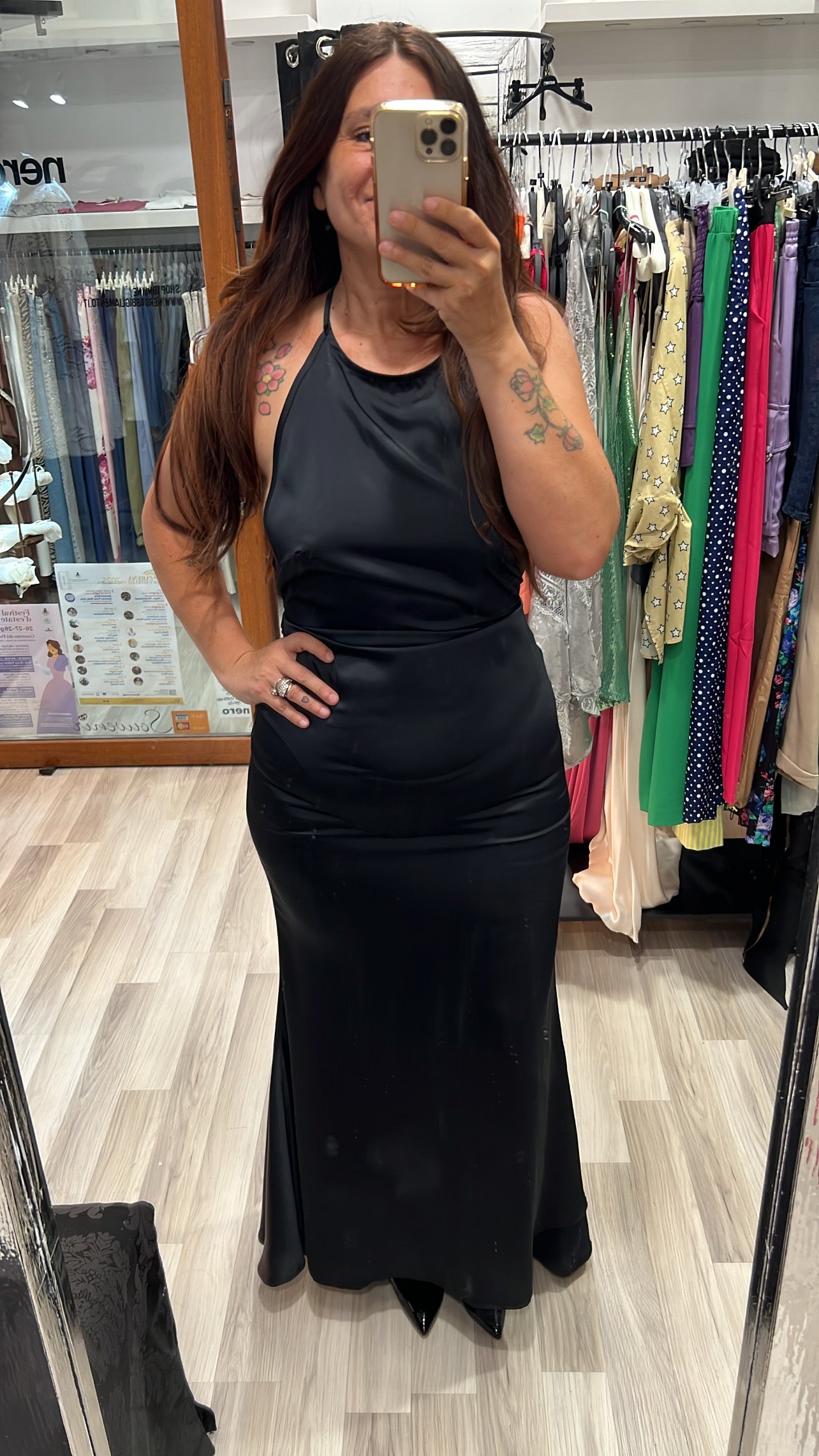 Questo abito sirena in raso é perfetto per le occasioni speciali. Il collo allacciato garantisce una vestibilità perfetta, mentre lo scollo ampio sulla schiena aggiunge un tocco di sensualità. La coda lunga dietro completa l'aspetto elegante e sofisticato di questo abito. Perfetto per essere il centro di attenzione sulla pista da ballo.