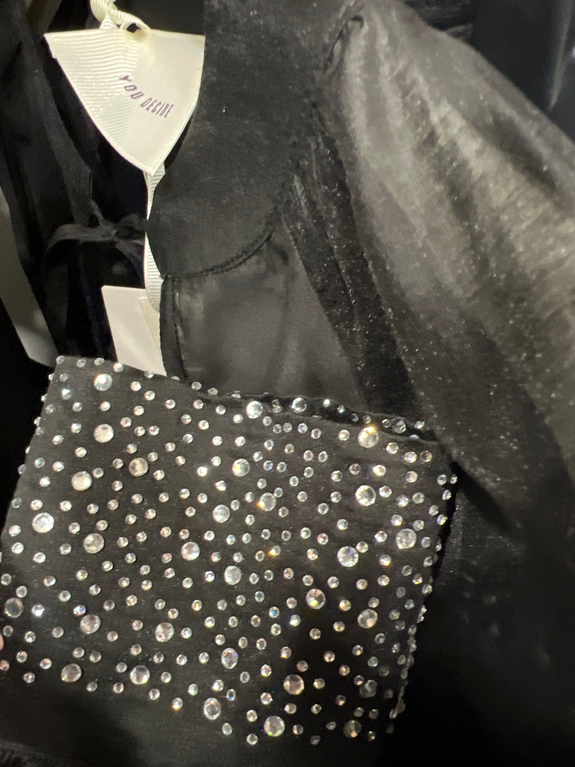 Blusa over in voile con laccetto al collo e polsini con applicazioni brilli