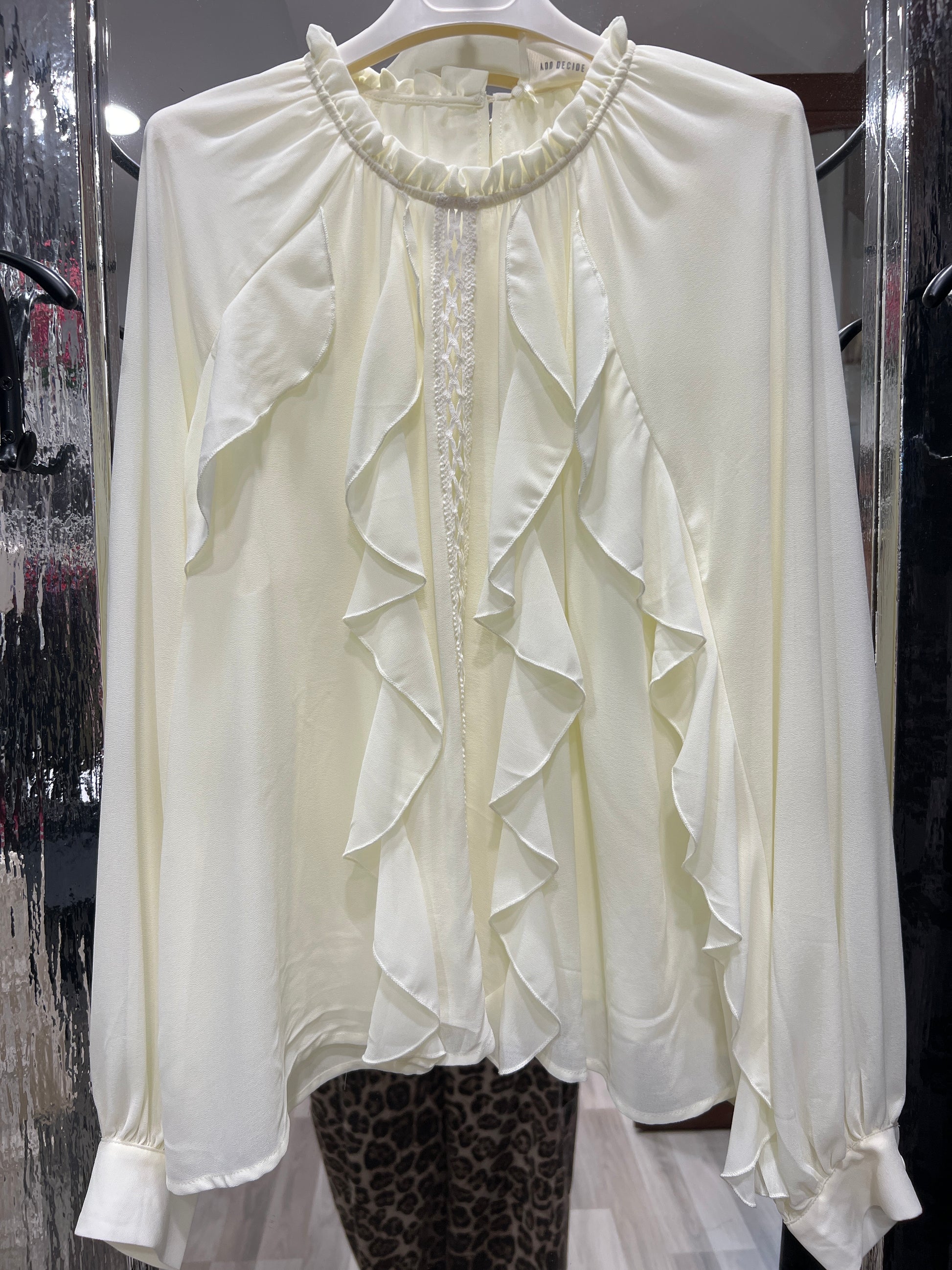 Camicia oversize in georgette con souches e motivo intaglio davanti