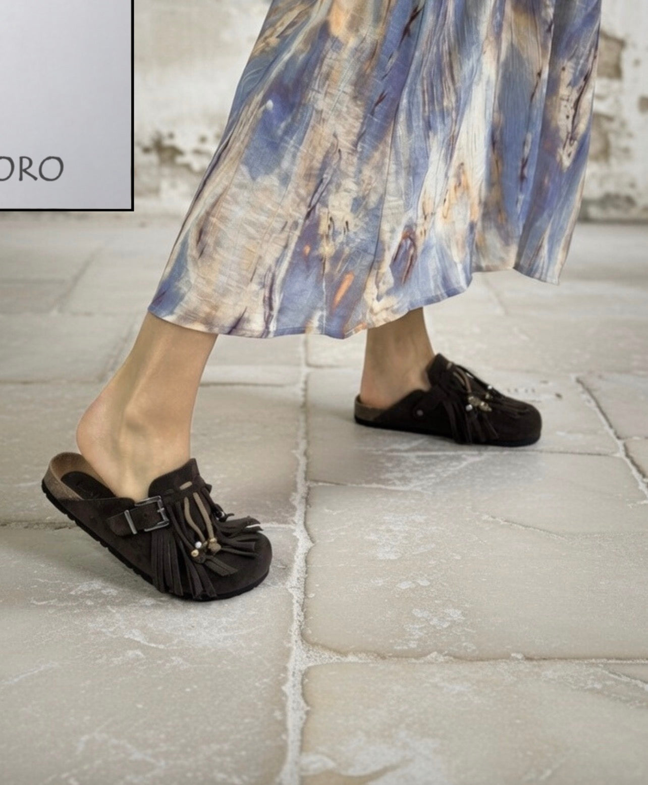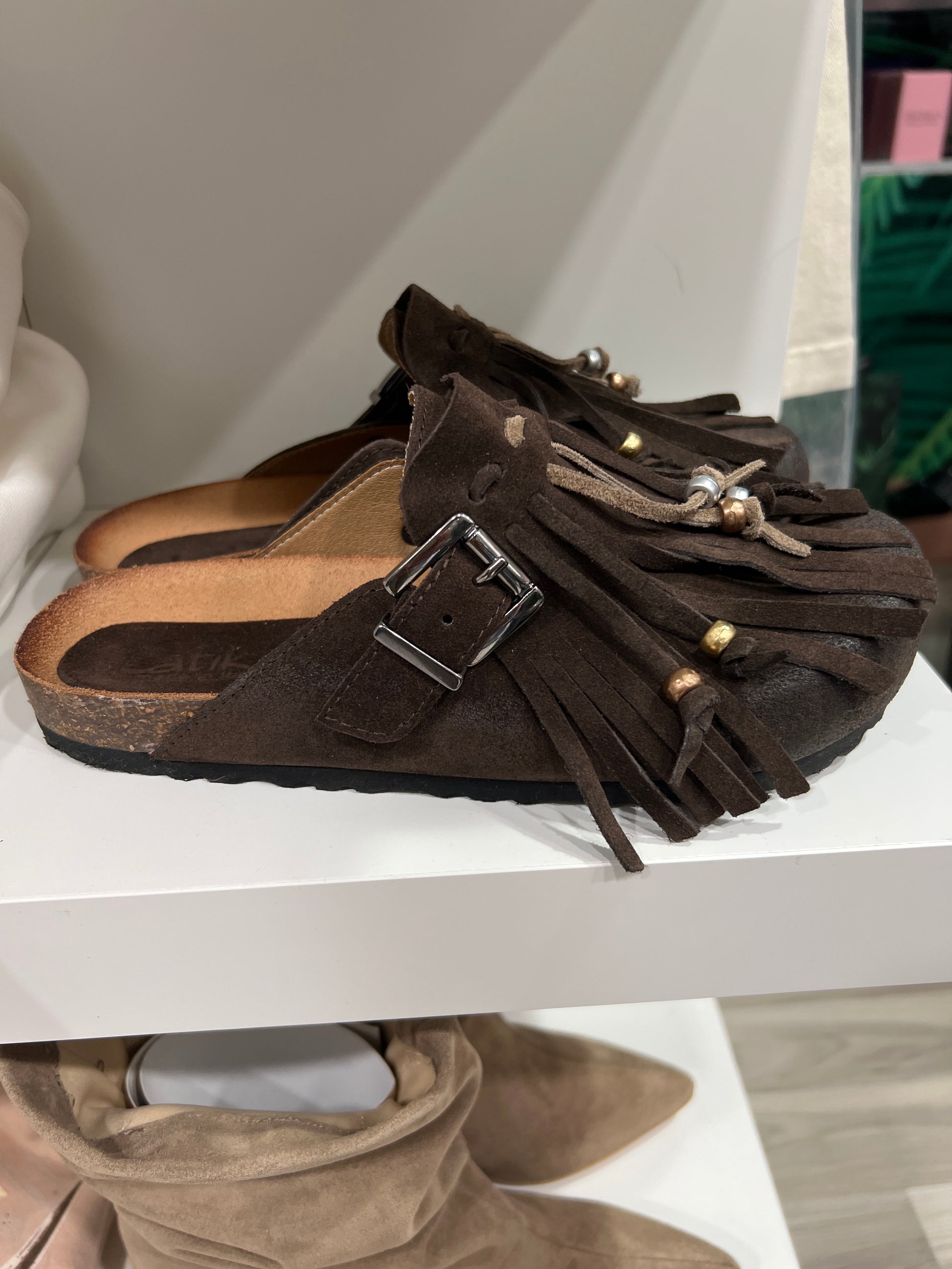 Ciabatta in crosta con frange camoscio e perline