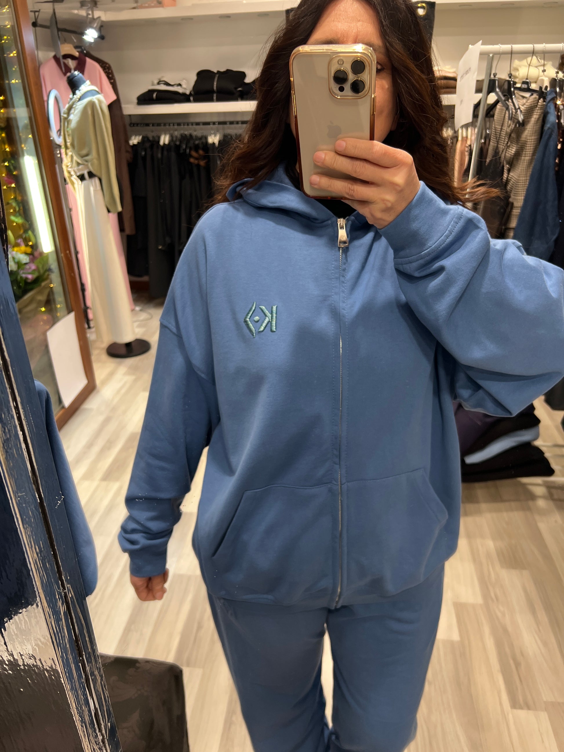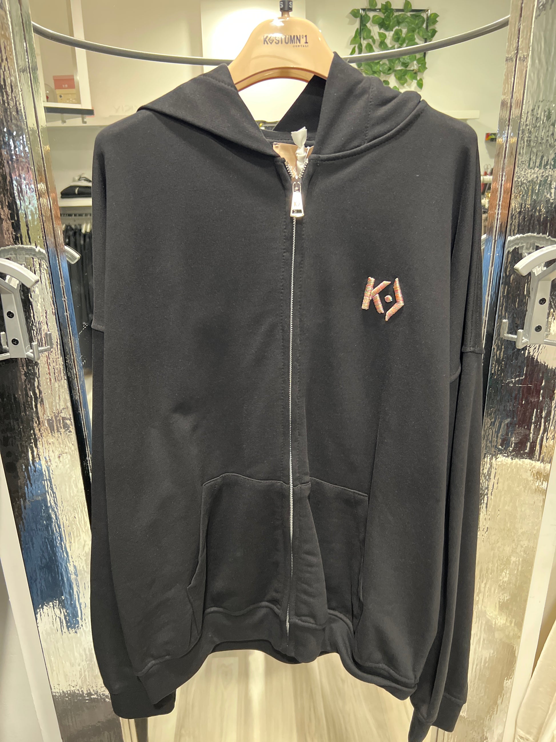 Felpa oversize in cotone leggero con zip cappuccio e tasche