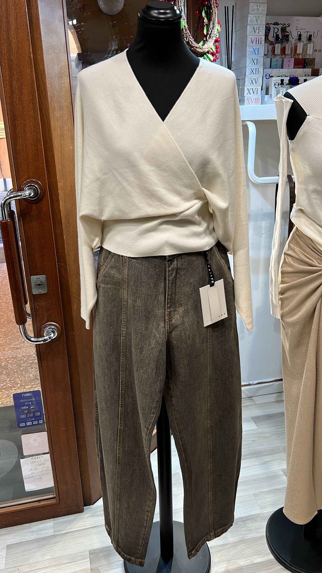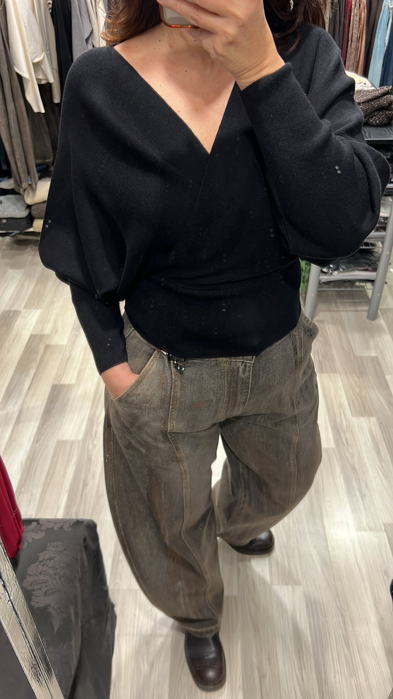 Maglia in viscosa pipistrello incrociata con fascia in vita