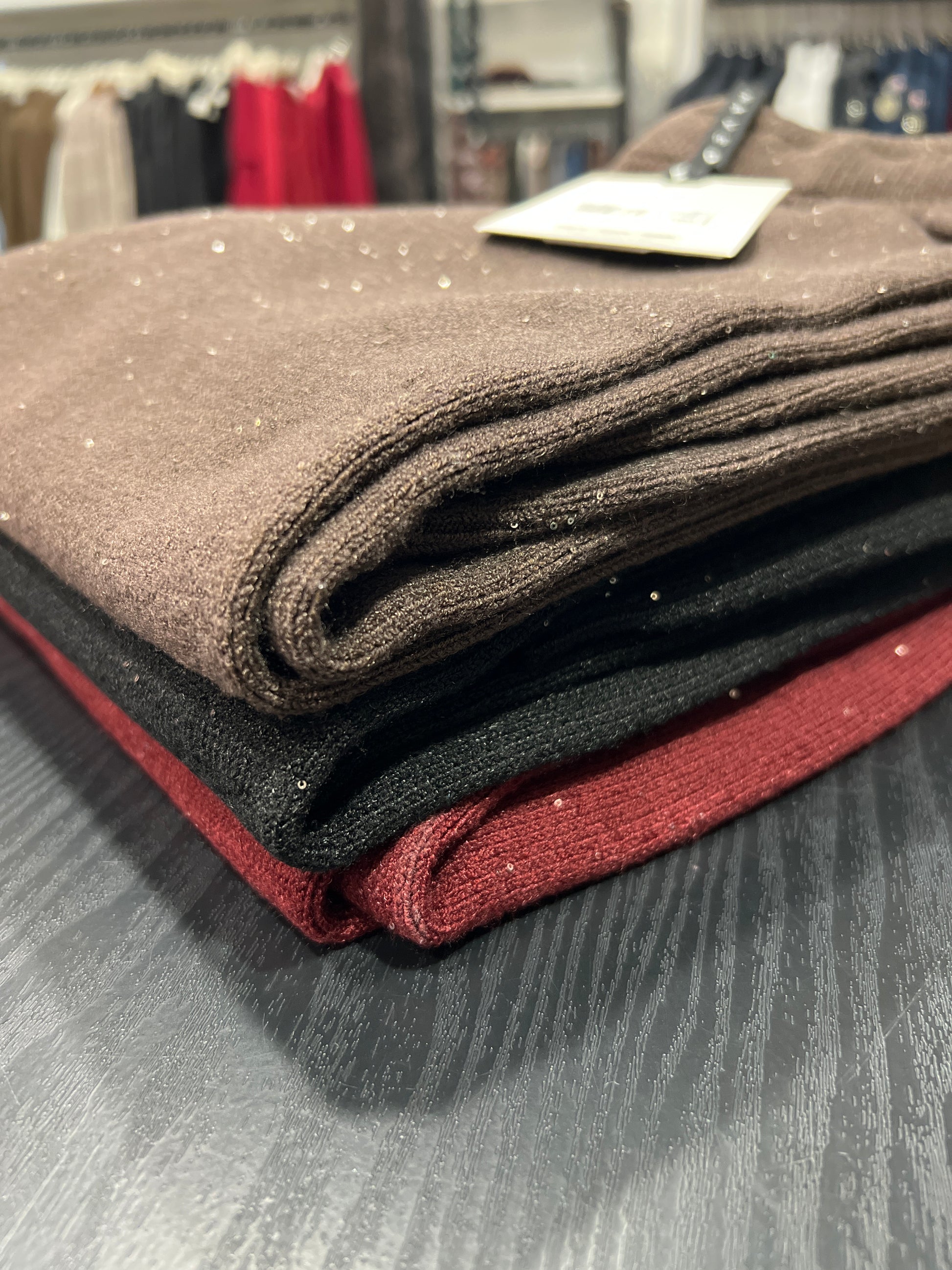Pantalone maglia viscosa fondo largo con micro paillettes con elastico in vita taglia unica